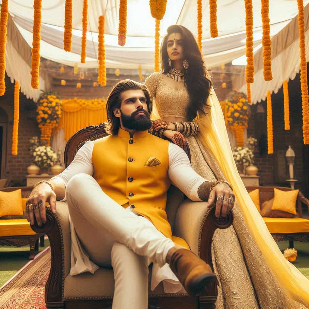 "Bhai, we can't have bhabhi looking better than you on your wedding day," Om said. He grabbed the bowl of Haldi and proceeded to throw it at me, when Akanksha grabbed his hand to stop him.